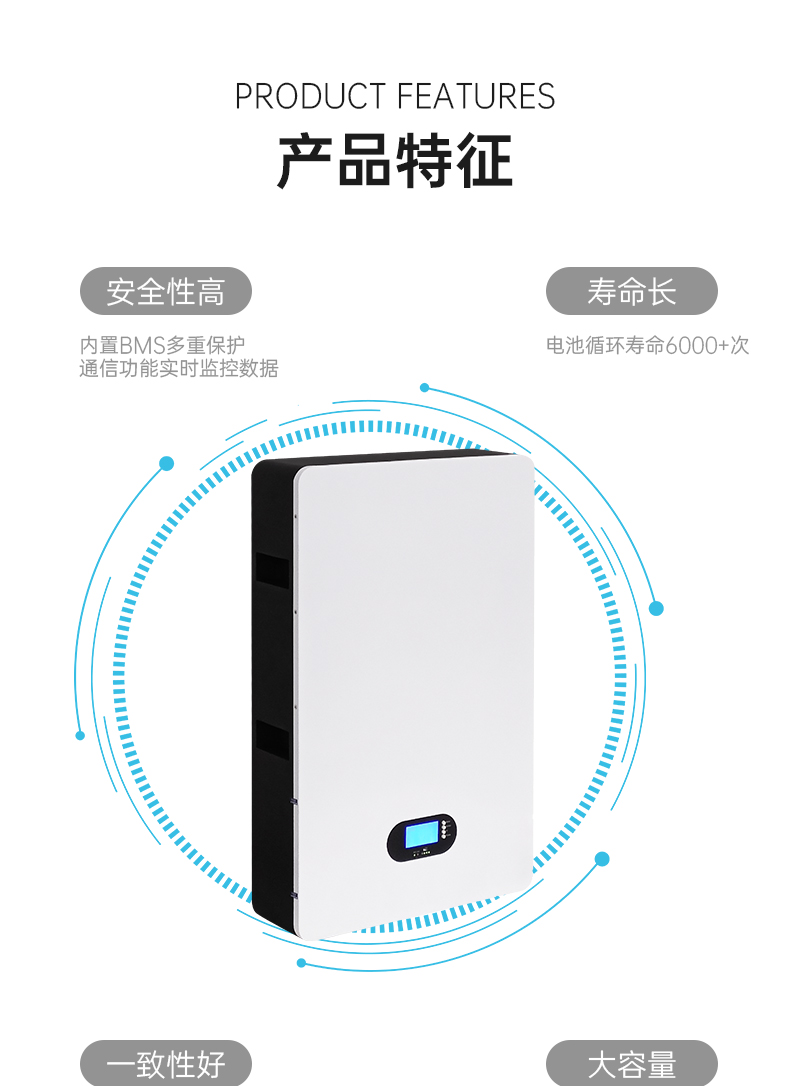 外贸出口热销壁挂式磷酸铁锂电池家用储能A级电芯5KWH/10KWH/15KW